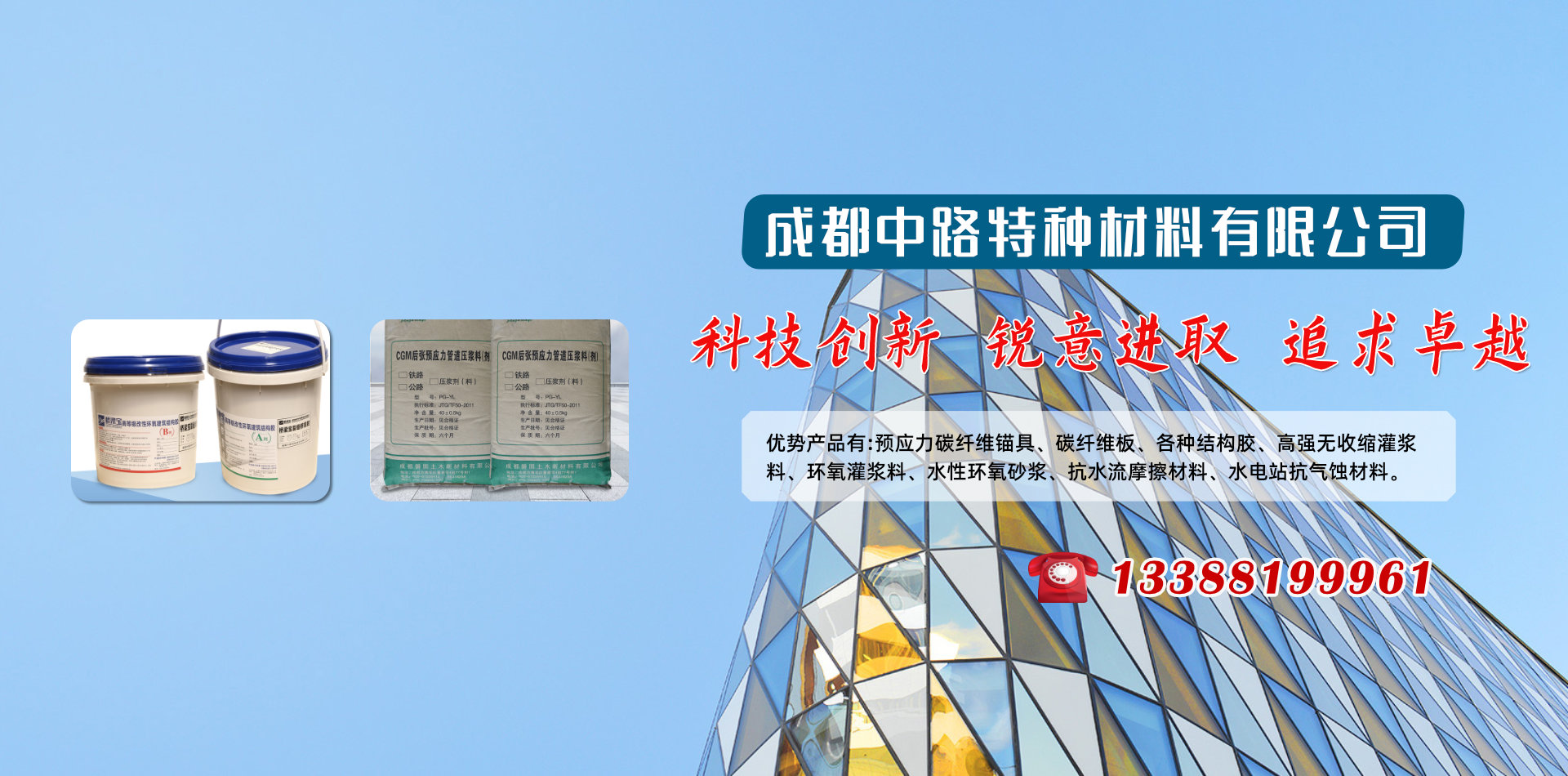 成都中路特種材料有限公司借助清華大學(xué)高分子材料學(xué)科、晨光化工研究院、西南交通大學(xué)、四川交通職業(yè)技術(shù)學(xué)院科研技術(shù)平臺成為一家集新材料研發(fā)、銷售、技術(shù)服務(wù)和施工于一體的專業(yè)服務(wù)公司,優(yōu)勢產(chǎn)品有:預(yù)應(yīng)力碳纖維錨具、碳纖維板、各種結(jié)構(gòu)膠、高強無收縮灌漿料、環(huán)氧灌漿料、水性環(huán)氧砂漿、抗水流摩擦材料、水電站抗氣蝕材料和研發(fā)各種特殊用途膠黏劑產(chǎn)品地處西南腹地成都,業(yè)務(wù)覆蓋四川各大中小城市、重慶、云南、昆明、新疆、西藏等區(qū)域。產(chǎn)品涵蓋各種加固施工材料、施工設(shè)備及施工配件,品牌有威士邦等aa進(jìn)口品牌,同時批發(fā)銷售國產(chǎn)高、中、低端品牌,為客戶提供全面參考。